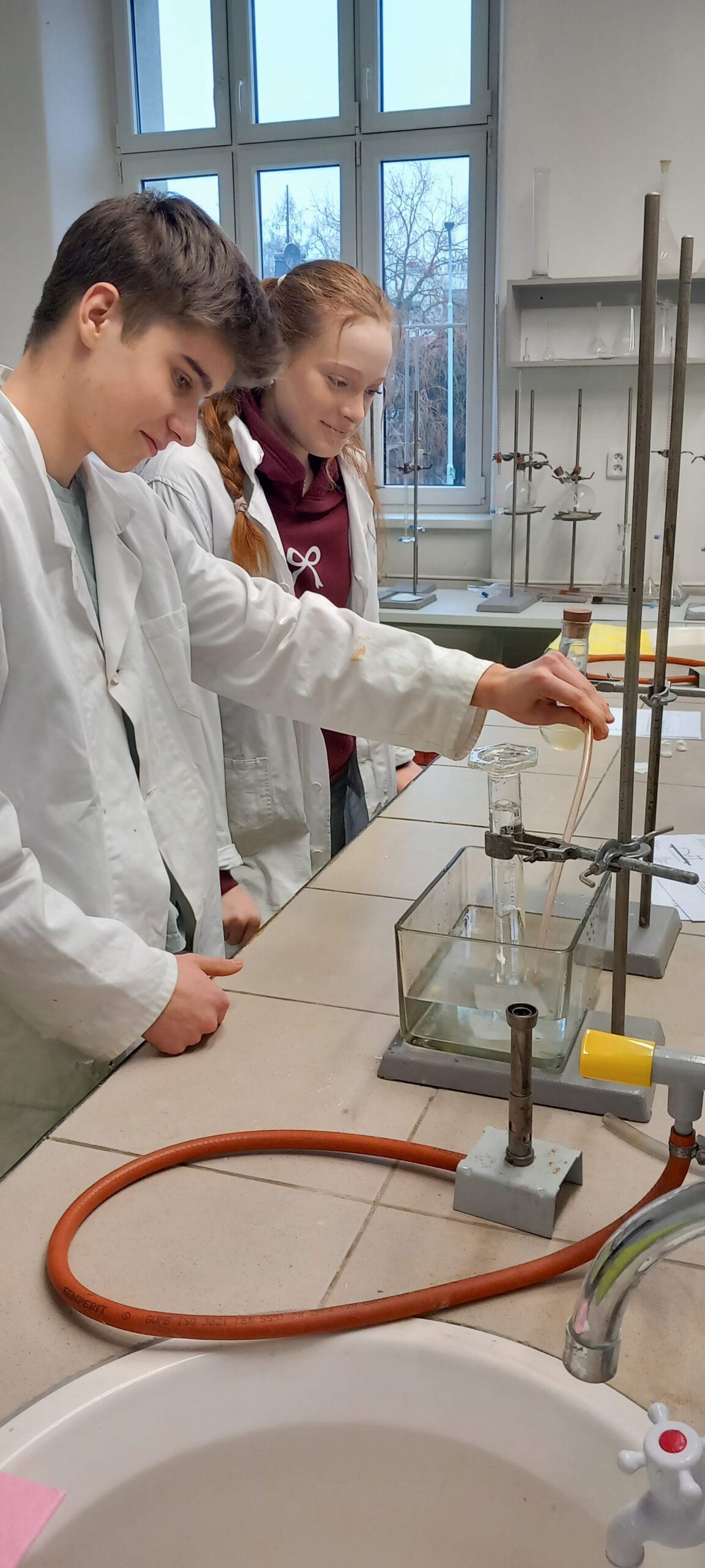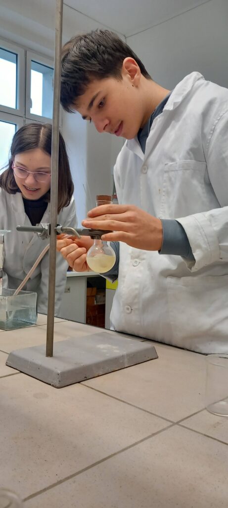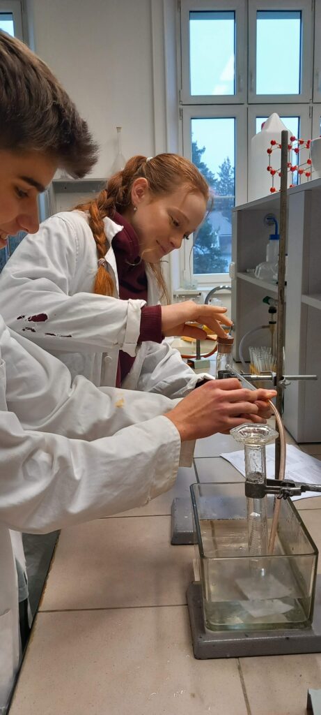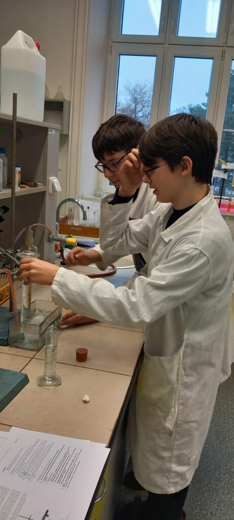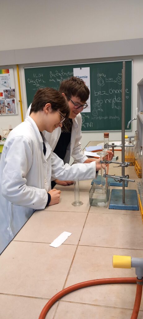 Začátek února je vždy časem, kdy ožívá chemická laboratoř. V letošním ročníku se 6 žáků ze třídy G4 snažilo vyřešit a mnohdy i vylušti záhady spojené s letem na Mars. Úlohy jako „Kalibrace palubního počítače“ nebo „Astronautův průvodce – Mezi nebem a hvězdami“ orosily nejedno čelíčko. V praktické části pak „Hon na dusík a síru (nejen) v kuchyni“ málem způsobil úprk od pracovního stolu.