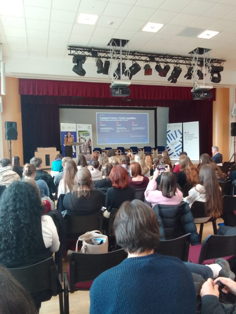 Ve středu 12.11. jsme se skupinou francouzštinářů z G6 a ze 3.AB vyrazili na akci, kterou pořádala Technická univerzita v Ostravě. Jednalo se o prezentaci stáží a studijních pobytů ve Francii, a to nejen v rámci programu Erasmus, ale byly nám představeny i další možnosti, jako je například „Rok ve Francii“, což je program podporovaný Francouzským institutem v Praze. Následovala část profesní, kde se v diskuzi setkalo několik zajímavých osobností, které díky znalosti francouzského jazyka dosáhly na významné kariérní pozice.