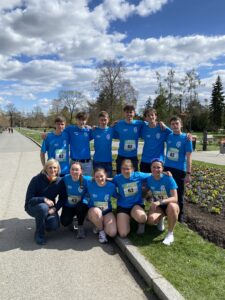 Maratónská trať 42,125 km je rozdělena na 10 stejných úseků, které se běží jako štafeta. 4 dívky ( Ema Berková, Anna Sýkorová, Ema Richtrová, Daniela Kačírková) a 6 kluků (Jan Matoušek, Václav Hroch, Jan Sýkora, Vojtěch Macek, Petr Kubíček, Matěj Heiser) vybojovali krásné 2.místo za Slovanským gymnáziem Olomouc a nominovali se tím na květnový Prague International Maraton. Blahopřejeme. 👏