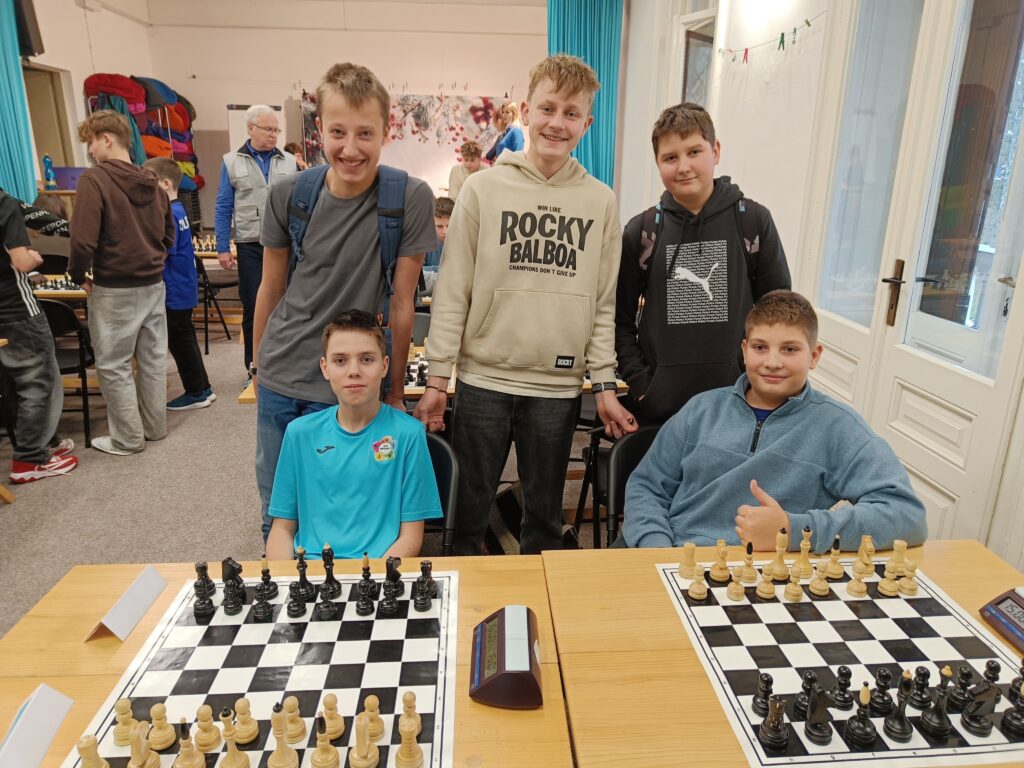 Za naši školu hrál Jakub Giesl (G.3) 2/6 b., Maxmilián Krahulec (G.3) 5/ 7 b., Vojtěch Kunčar (G.2) 5,5/ 7, Jonáš Havlíček (G.1) 2/ 4 b., Jakub Bartoš (G.3) 3/ 4 b.