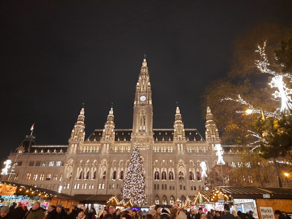 Večer už patřil adventním trhům. Vídeň jich nabízí několik; my jsme si vybrali ty u radnice, které se svými tisíci světýlky patří k nejkrásnějším ve městě. A název trhů „Christkindlmarkt“ pak všem zvědavým prozradil, kdo nosí dárky u našich rakouských sousedů.