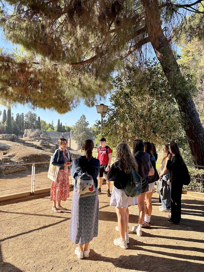 Výlet do historického města Mérida. S průvodkyní Susanou, paní učitelkou latiny a řečtiny, procházíme historická místa a památky. Navštívíme působivý amfiteátr, vyslechneme příběh ze starých bájí a projdeme se přes město do bývalé starověké tvrze. Odpoledne se vracíme zpět do Cáceres, kde nás čekají naši španělští přátelé, kterým končí vyučování ve škole a začíná páteční odpoledne s námi.